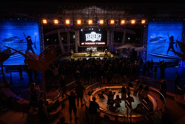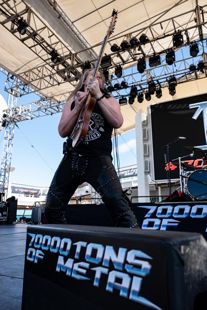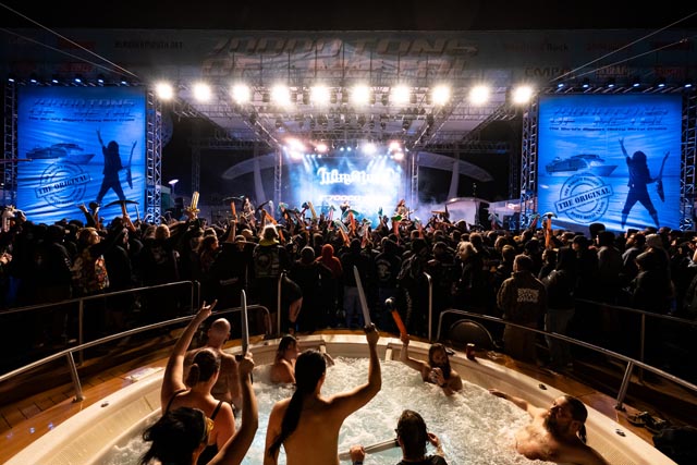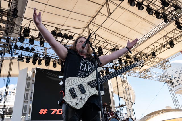 By the final day of the cruise, I had seen most of the bands I wanted to see, so I spent a lot of Day 4 with friends or exploring the other events on board. I started with Dragonland at the Royal Theater, getting a nice wake-up with some energetic melodic power metal to kick off the morning. Then I headed up to the Pool Deck to see Tyr, and, for the first time on the entire cruise, the sun! This was probably the highest attended set I saw at 70K this year, likely due to a combination of Tyr’s widespread appeal, the lack of conflicts, and the amazing weather during their set after 3 days of clouds and rain.