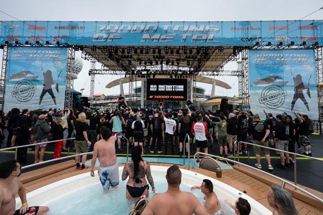 On January 29, 2026, the fourteenth edition of 70000tons of Metal set sail from Miami bound for Nassau. Instead of the expected tropical sunshine, the voyage was met with unseasonably cool temperatures, rain, and rougher seas—a disappointment for cruisers hoping to escape winter, but an oddly fitting atmosphere for a lineup heavy on doom, melodeath, and gothic metal. The weather forced a last-minute schedule shuffle, moving the shore day from Day 3 to Day 2 and resulting in several bands performing on back-to-back days rather than being spaced out. Fortunately, the adjusted port day still allowed passengers to explore Nassau, a luxury not afforded to some ships that docked on the originally intended port day.
