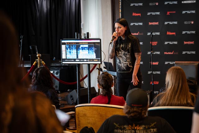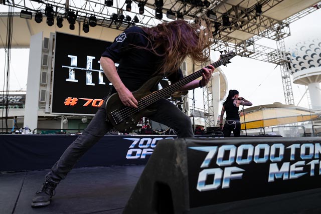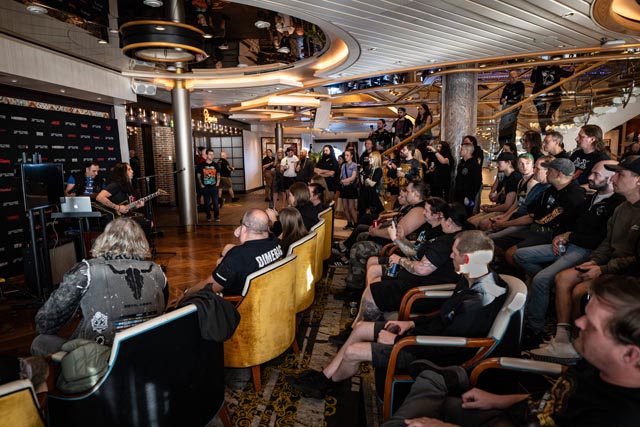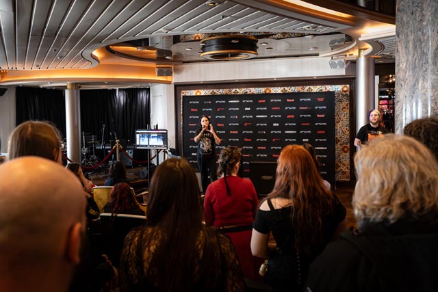 For fans who are also musicians, 70K hosts several artist clinics, which are mini-classes taught by musicians on board. This year, the clinics included a harsh vocals clinic with Britta Görtz (Hiraes), a guitar clinic with Gus G. (Firewind), a violin and hurdy gurdy clinic with Lea-Sophie Fischer (Eluveitie), a guitar and vocal clinic with Lenny Bruce (Dust Bolt), and a rhythm and mind connection clinic with Ruston Grosse (Skeletal Remains).