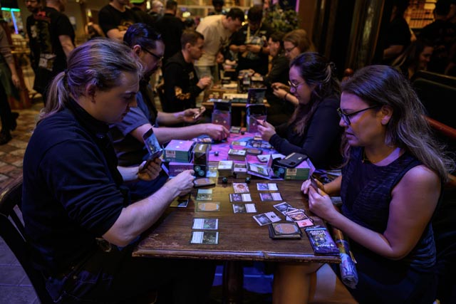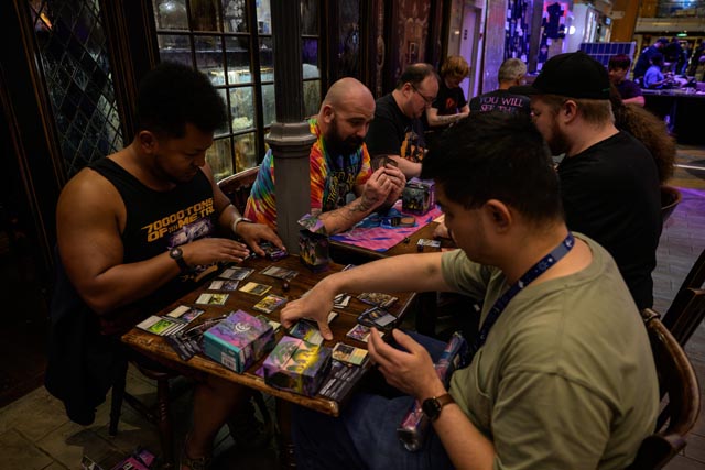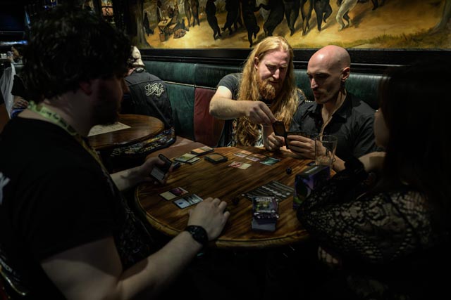 In addition to shows, 70K offers a number of different experiences to fans, even beyond the standard cruise offerings like waterslides and spa treatments. One of these is the now-annual Magic: The Gathering tournament, sponsored by Wizards of the Coast. I was expecting a quick-play format like Jumpstart, which is easy to learn (just take your packs, shuffle, and play), but the event turned out to be a full-fledged pre-release event for Lorwyn Eclipsed, where participants were given a pre-release pack (6 booster packs, a deck box, and a spindown die) along with a playmat and card sleeves. This format is a little more challenging for new players, but there were several people on hand to help introduce the game, including host Yannis Papadopoulos from Beast in Black and Alessandro Conti from Trick-or-Treat. Another great experience is the Artist Meet & Greet sessions. Across the ship on Day 3, nearly every band hosts an open session for fans, no extra VIP pass required. The lines for bigger artists can start early and become longer than their dedicated time, but for many bands, you can just walk up and have a conversation with them. While the whole cruise can sometimes feel like an open VIP session, the formal M&Gs are a great way to get things signed or to meet your favorite bands for people who are uncomfortable just approaching artists when they see them onboard.