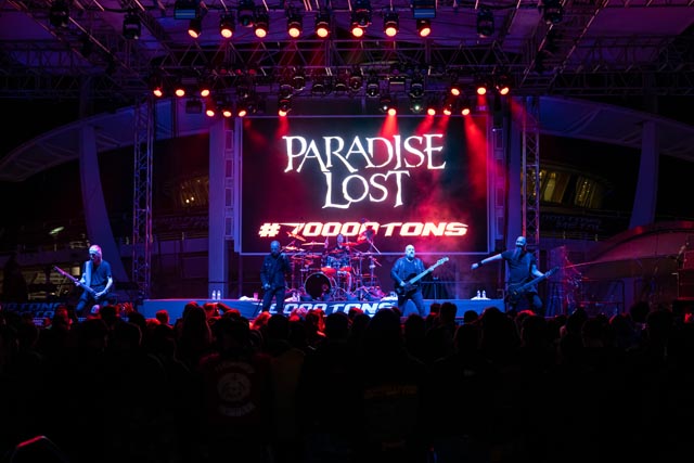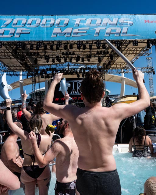 For the final few shows of the cruise, I revisited some of my favorite artists I had seen over the last few days, like Paradise Lost, Tribulation, and Dark Tranquility, taking some time to enjoy the sets with friends and relax a bit. Towards the end of Dark Tranquility, it was time for Skipper’s annual announcement, which noted the difficulties this year with the weather and associated last-minute schedule changes. The announcement included a reveal of the 2027 logo, but notably lacked any information about the 2027 cruise, with no mention of dates, destination or departure port, or ship. In past announcements all or at least 2/3 of these things are included, so their absence has led to significant speculation on the Pool Deck, the 70K forum, and the 70K Discord regarding the future of the long-running metal cruise.
