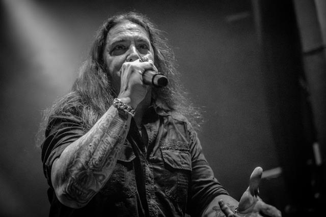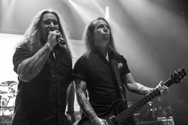 Before the show, the crowd was easy to pick out as I got closer to the venue from my hotel. Despite the massive wait for Savatage’s return, the crowd was surprisingly open-minded for the opener, a young and hungry band by the name of Induction, who weren’t actually listed as being on the show (not even on the ticket app or the venue website). Their particular brand of metal is very much an ’80s throwback and solidified by (mostly) big hair and incredibly tight guitar work. And if you weren’t into it when they started playing, their rendition of “The Final Countdown“ probably hooked you right in. It was refreshing to hear such traditional metal being written by a new generation of bands.