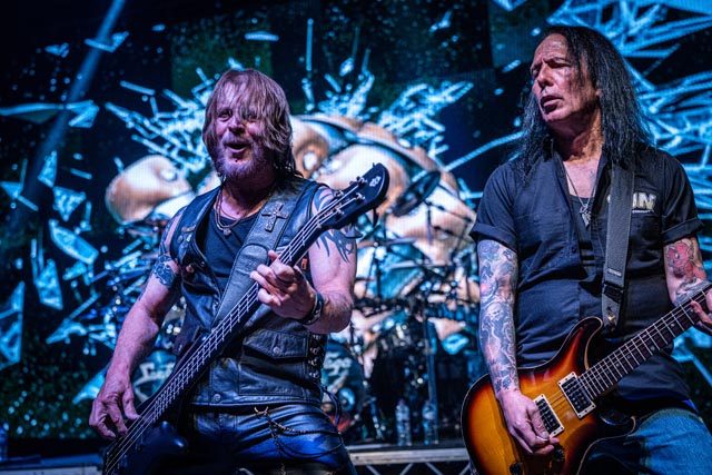 I want to call out a really special moment – while Jon was not present for the show, the band prepared a special way to include him. A pre-recorded video of Jon behind the piano led the live band into their legendary track “Believe,“ and ended in the most epic fashion. While the band kicked in to perform the majority of the song, Jon’s video was carefully synced to the band, so much so that it was brought back in the outro for Jon and Zak to trade lines and even harmonize. While it doesn’t quite compare to seeing the Mountain King in the flesh, it was an incredibly special moment for the fans. And lastly, while Caffery & Pitrelli are careful to honor the spirit of the late Criss Oliva’s solos, Caffery paid special attention to the “Believe“ solo, which was synced up to photos of a young Criss, many alongside his brother Jon, from the early days of the band.