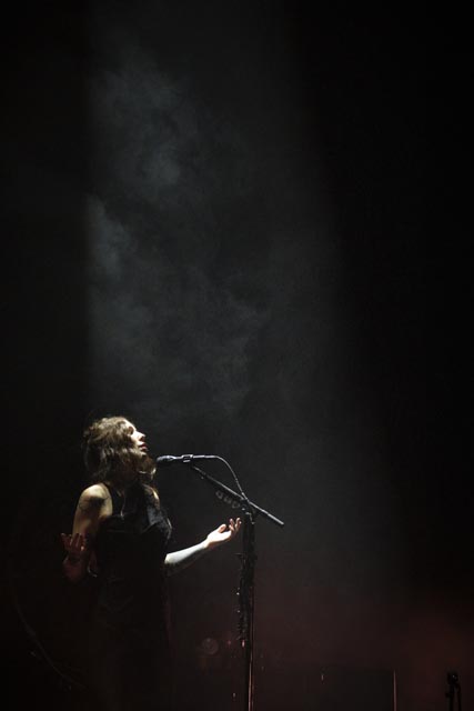 The evening kicked off with Chelsea Wolfe at 7:30 PM. The Northern California-based solo artist provided a 45-minute set, highlighting tracks from her 2024 album She Reaches Out to She Reaches Out to She. With subtle lighting and one backing musician, Wolfe’s dark, poetic energy carried the room. Her haunting vocals were more than enough to captivate the audience. Towards the end of her set, Wolfe performed two songs solo, highlighting her raw and immaculate style. Wolfe kept her interaction brief but remained heartfelt, expressing, “This is a beautiful tour.” Her setlist blended newer material with fan favorites, including “The Mother Road,” “Tunnel Lights,” and fan favorites “16 Psyche” and “Feral Love.”