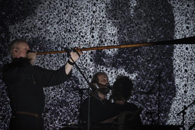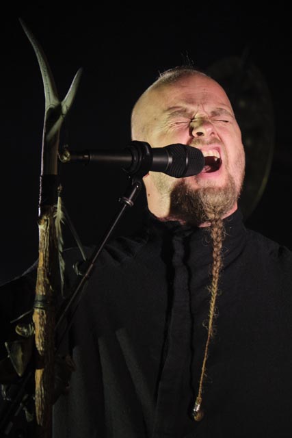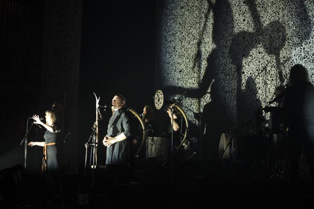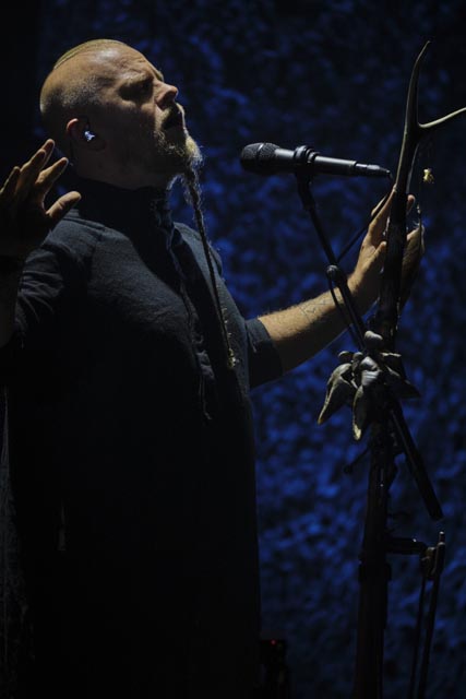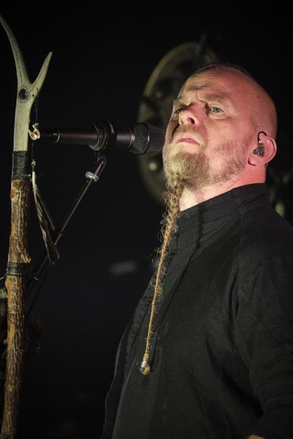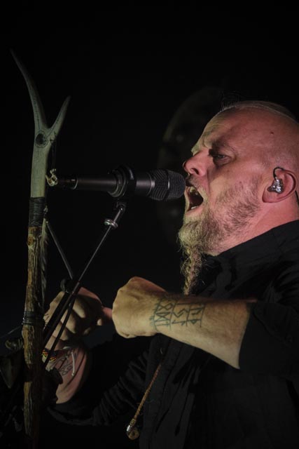 After a short break, Wardruna took the stage at 8:35 PM, with seven members filling the space on the stage with a spotlight on frontman Einar Selvik alongside Lindy-Fay Hella. Their 90-minute set surpassed the standard of a musical concert; it felt more like a spiritual awakening. At around 9:40 PM, Selvik took a comedic detour to say, “Cultural pissing contest is irrelevant.” He emphasized the value of song itself by simply stating, “Singing will make you a better person,” before jokingly giving the crowd “homework.” All humor aside, Wardruna isn’t classified as a “party band,” therefore, participation to add to the comedic break wasn’t necessary. Wardruna continued with their musical collection, guiding the audience through a deeper, ritualistic performance.
