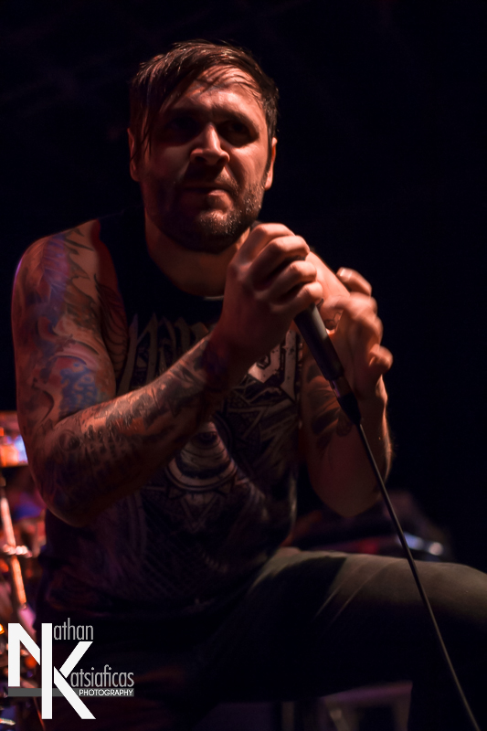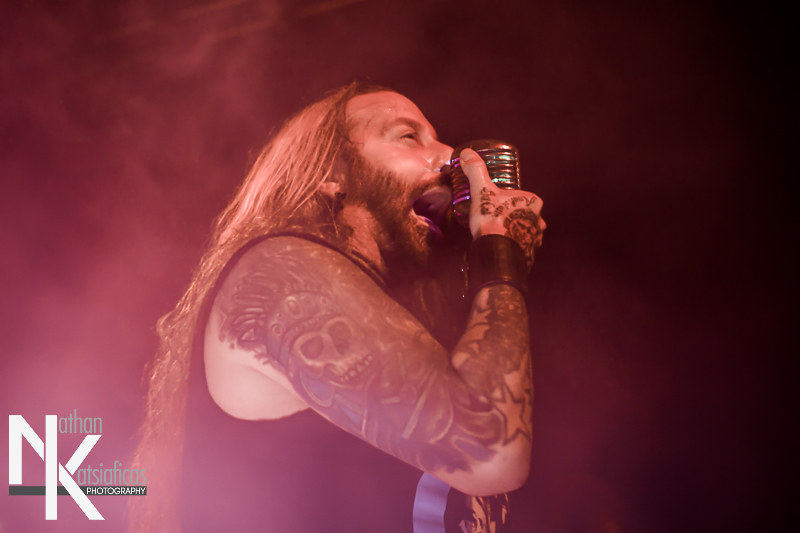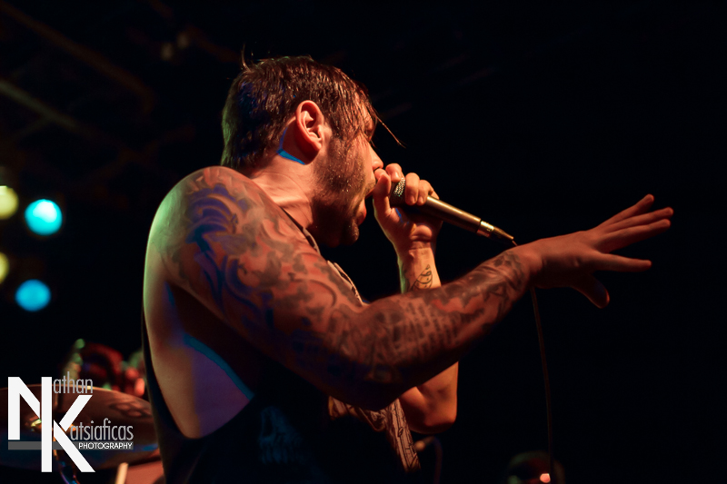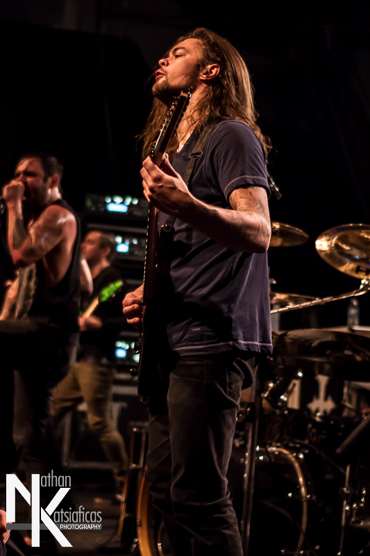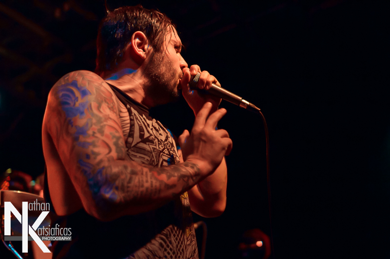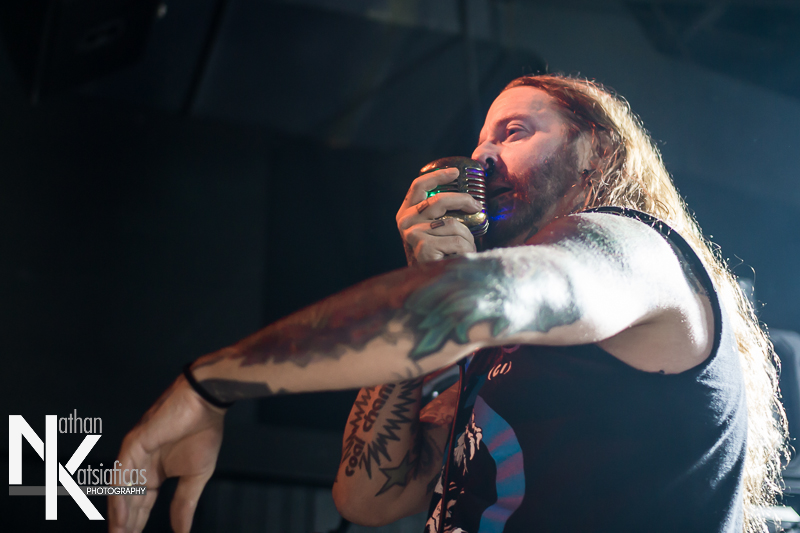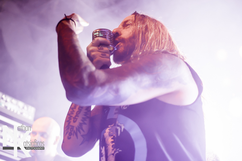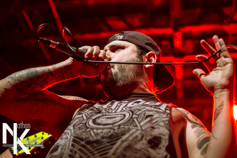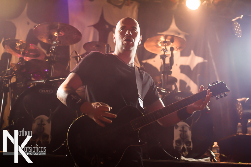 Dez Fafara and the guys of Devildriver were up next and played a lengthy 13-song set that featured a lot of fan-favorites, like “Clouds Over California,” “Not All Who Wander Are Lost,” “Dead To Rights” and more, but also included four tracks off their 2013 release, Winter Kills. Dez may be getting up into his late forties, but you wouldn’t know it from the performance he gave that night, Devildriver probably had the most energetic set of the evening (though to be fair ATB had no room to move and TWBD had even less!) and some of the most violent moshing too.  I’ve seen the band play a few times, this was by far the best I’d seen them, and seeing such a massive band in so in so intimate a setting, with Dez right up in my face was probably the coolest thing ever.  The strangest part of their set (but also one of the coolest) was their cover of AWOLNATION’s “Sail”–a song I would never have imagined any metal band, let alone Devildriver, making listenable, let alone making it slay like they do.