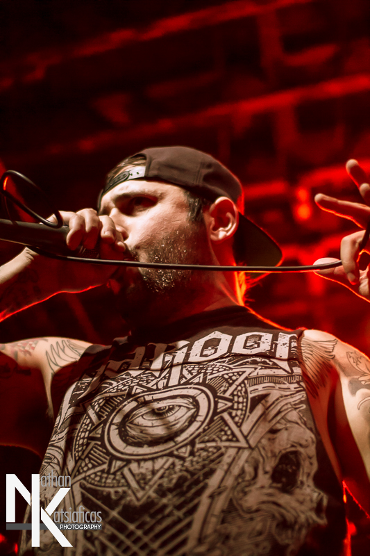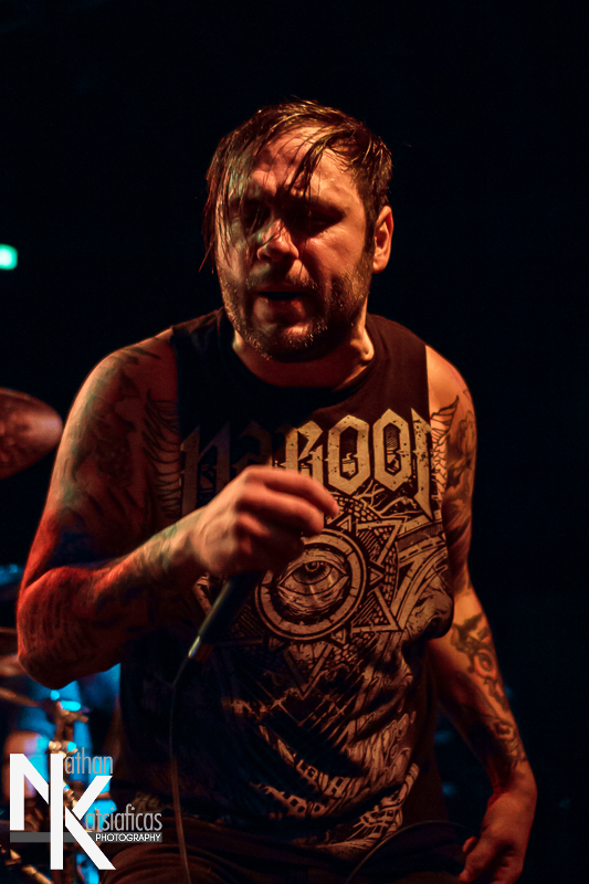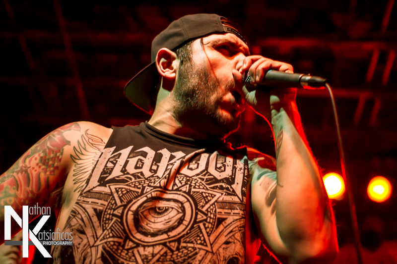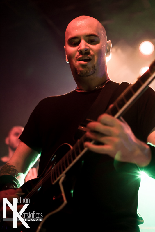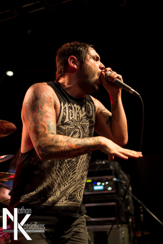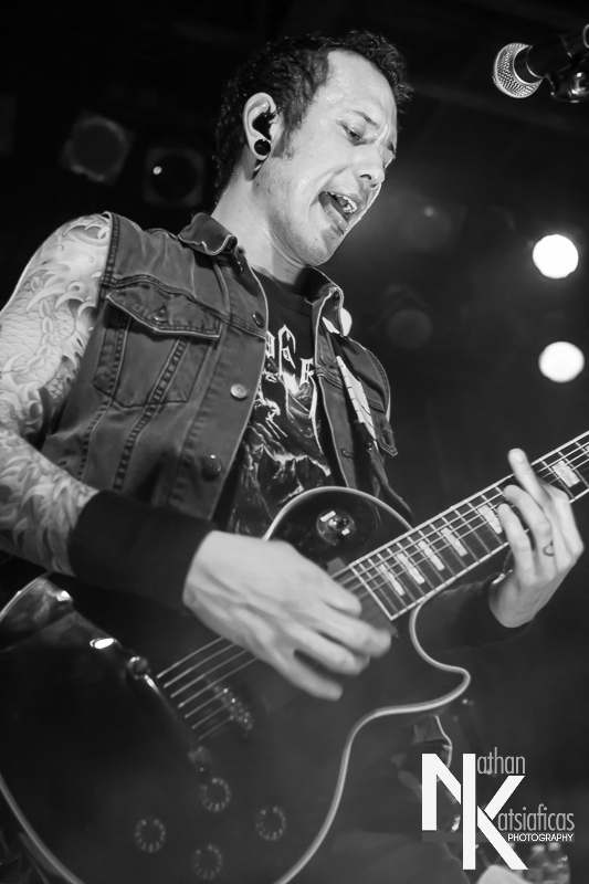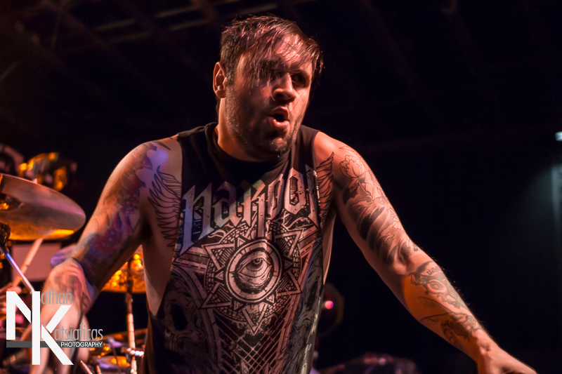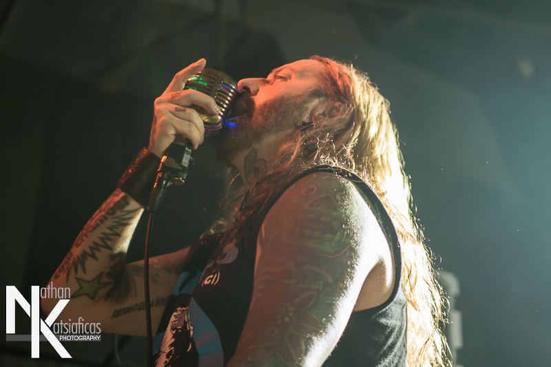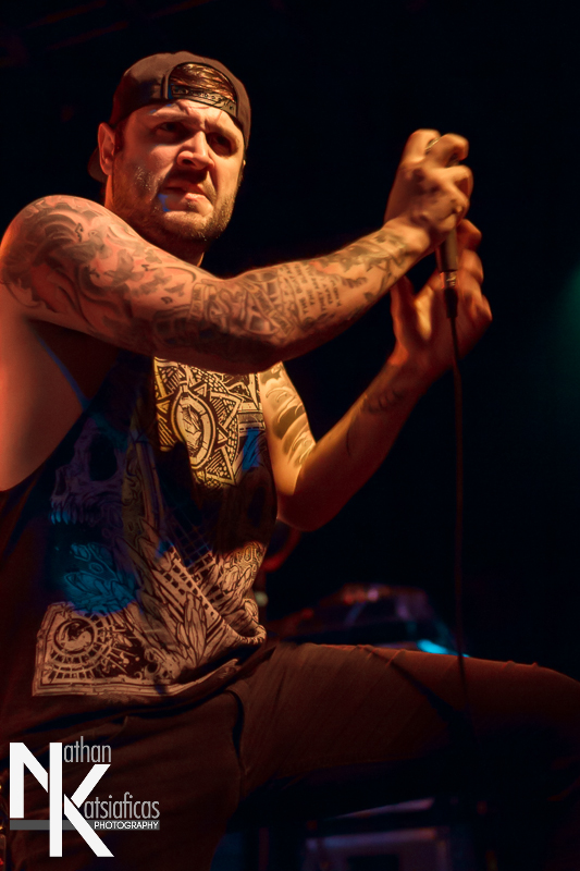 Dez Fafara and the guys of Devildriver were up next and played a lengthy 13-song set that featured a lot of fan-favorites, like “Clouds Over California,” “Not All Who Wander Are Lost,” “Dead To Rights” and more, but also included four tracks off their 2013 release, Winter Kills. Dez may be getting up into his late forties, but you wouldn’t know it from the performance he gave that night, Devildriver probably had the most energetic set of the evening (though to be fair ATB had no room to move and TWBD had even less!) and some of the most violent moshing too.  I’ve seen the band play a few times, this was by far the best I’d seen them, and seeing such a massive band in so in so intimate a setting, with Dez right up in my face was probably the coolest thing ever.  The strangest part of their set (but also one of the coolest) was their cover of AWOLNATION’s “Sail”–a song I would never have imagined any metal band, let alone Devildriver, making listenable, let alone making it slay like they do.
