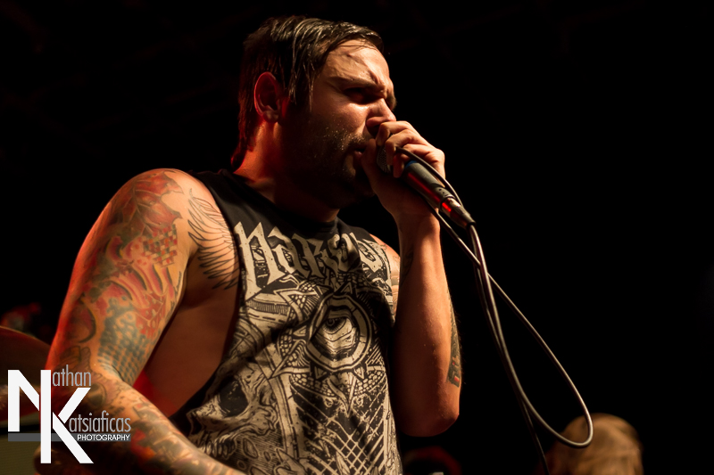 After the Burial took the stage next, playing to an audience that seemed to have never heard of them.  Within the first 30 seconds, it was almost entertaining to see all the people I’d overheard asking “who’s this next band?” standing with their mouths agape or headbanging furiously to the grooves of ATB’s opening track, “My Frailty”  from 2011’s In Dreams.  Things never slowed down in their set, with the band even treating fans to two new tracks, including the massively catchy (and awesome, in my opinion) “A Wolf Amongst Ravens” and “Anti-Pattern” from their upcoming release, Wolves Within (out on December 17, 2013 via Sumerian Records).  ATB closed their six-song set with “Aspiration” off of 2008’s Rareform.  They put on a hell of a show, I can’t help but think that touring with the likes of Trivium and Devildriver has helped them improve live, and playing each night before an audience that is mostly new to their music can only be a good thing to help further their career.