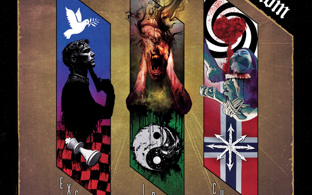 Exceed In2 Chaos boasts a truly awesome and provocative middle finger of a cover by Cursed Art, with whom Sarkom also conspired for Doomsday Elite (2013) and their earlier split with Urgehal. This image is quite far outside what we typically see in the genre, thus making it all the more black metal — if you have been paying attention, then you have surely observed that many of Sarkom’s competitors have made a habit of placing generic yawn-generators passing as pieces of artwork before our eyes.