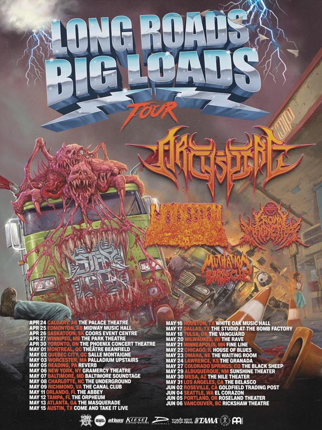 Extreme technical death metal outfit Archspire have announced the Long Roads Big Loads Tour. Supporting their upcoming album, Too Fast to Die, scheduled to arrive on April 10, 2026, the news follows the release of their blistering new single “Carrion Ladder.” Special guests on the run include Undeath, Crown Magnetar, and Mutilation Barbecue. Tickets go on sale Friday (19th) at this location.