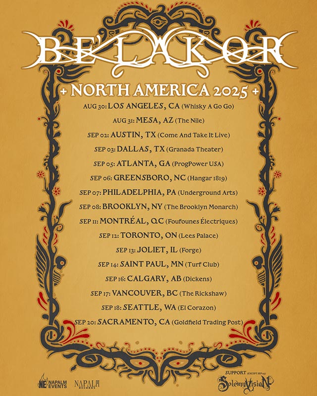 Joined by rising melodeath act Solemn Vision, the tour kicks off August 30 in Los Angeles, CA, and runs through September 20 in Sacramento, CA. Tickets are available at this location.