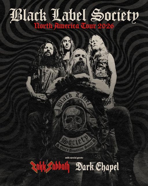 Black Label Society have announced a 2026 North American tour where you will see frontman Zakk Wylde, bassist John “JD” DeServio, and drummer Jeff Fabb perform double duty, also taking the stage as part of their Black Sabbath tribute act, Zakk Sabbath. Dark Chapel, the heavy new project led by BLS guitarist Dario Lorina, will open up each night of the trek. The tour kicks off on February 27 in San Antonio, TX. It concludes on April 10 in Charlotte, NC, followed by a short Southeastern leg in May that wraps on May 14 in Nashville, TN. Tickets go on sale Friday (14) at 10 a.m. local time.
