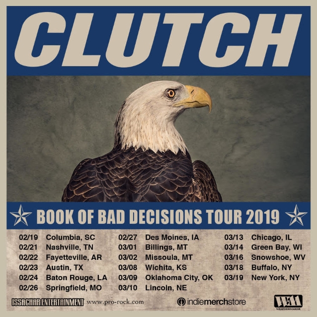 Maryland hard rockers Clutch has announced an early 2019 U.S. tour in support of their latest effort Book of Bad Decisions. The trek is scheduled to kick off on February 19th in Columbia, SC and runs through March 19th in NYC at Irving Plaza. Tickets go on sale this Friday (16th).