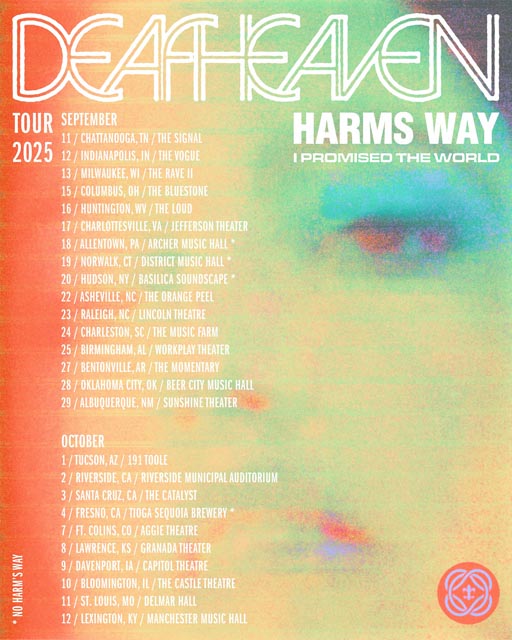 Post-black metal outfit Deafheaven have announced a fall U.S. headlining tour. Joining them on the road will be Harm’s Way and I Promised The World. The tour kicks off on September 11 in Chattanooga, TN, and runs through October 12 in Lexington, KY. Select dates will feature only I Promised The World, with Harm’s Way absent from a handful of shows. Tickets are available at this location.