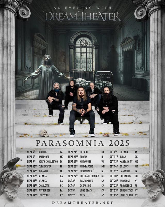 Dream Theater will return to the road this September for a U.S. headlining tour. The trek will be An Evening With Dream Theater event, celebrating the group’s sixteenth studio album, Parasomnia. Tickets are available at this location.