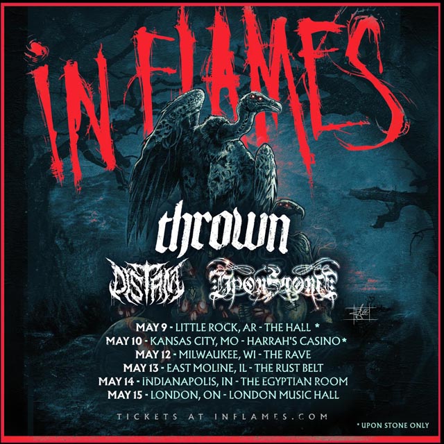 In Flames have announced a string of US tour dates set for May 2026, scheduled between their festival appearances at Welcome To Rockville and Sonic Temple. Support on select dates will come from Thrown, Distant, and Upon Stone. Tickets go on sale today (23rd) at 10 AM local time via this location.