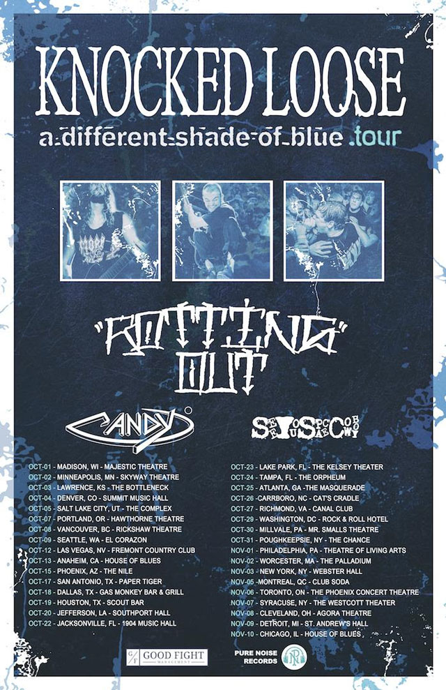 Knocked Loose have announced an extensive headlining North American trek as Rotting Out, Candy, and SeeYouSpaceCowboy will be joining in for support. The tour is in support of the group’s upcoming sophomore album, A Different Shade of Blue, which will be released on August 23rd via Pure Noise Records. The trek officially kicks off on October 1st in Madison, WI and will run through November 10th in Chicago, IL.