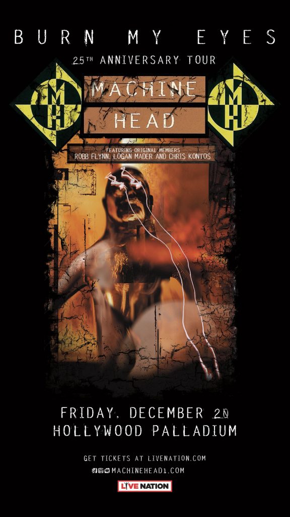 It wasn’t too long ago when Machine Head announced a European tour to celebrate the 25th anniversary of their debut album Burn My Eyes. The trek features frontman/guitarist Robb Flynn and bassist Jared MacEachern joined by original members Chris Kontos and Logan Mader as they’ve been sharing live-in-the-studio performances as well as a roundtables video to further discuss the celebration. Today (3rd) the band has officially announced their first U.S performance to commemorate their debut, which will be held on December 20th at the Hollywood Palladium in Los Angeles, CA.