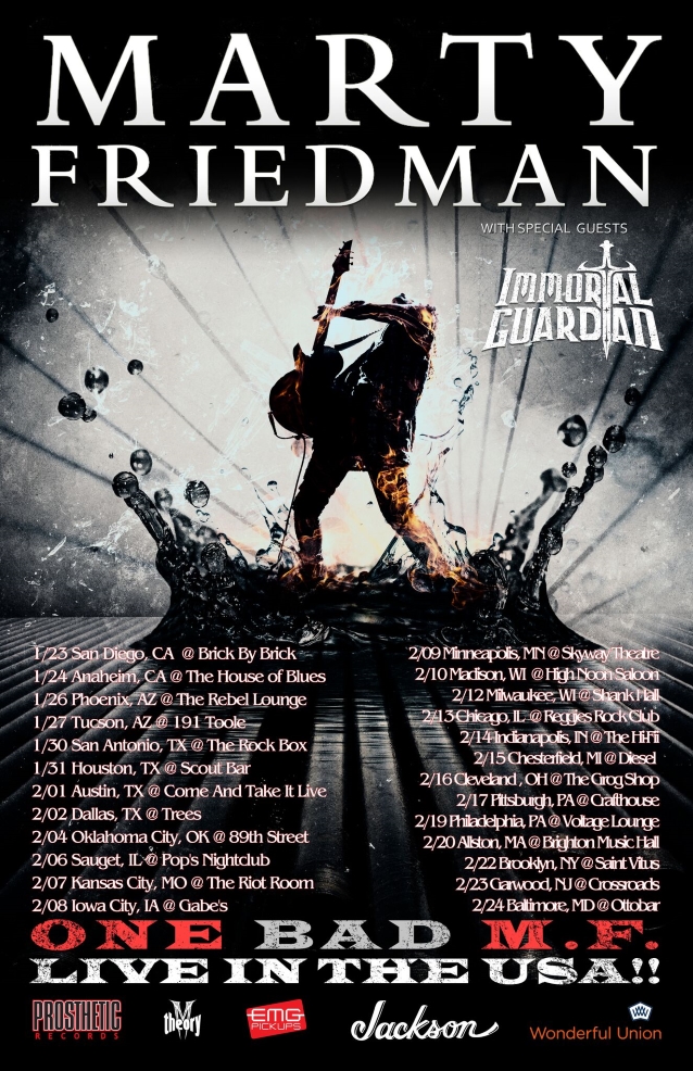 Marty Friedman has announced a U.S trek titled One Bad M.F. Live In The USA!! The former Megadeth guitarist’s tour will kick off on January 23rd in San Diego, CA and will run through February 24th in Baltimore, MD. Immortal Guardian will be joining in as Friedman’s special guests throughout the trek.
