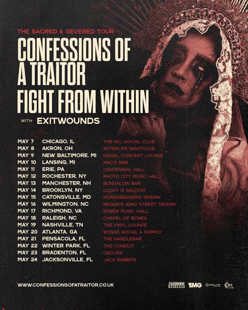 British metalcore outfit Confessions of a Traitor have announced a North American headlining run dubbed The Sacred & Severed Tour. Support will come from Fight From Within and ExitWounds. Tickets are available at this location.