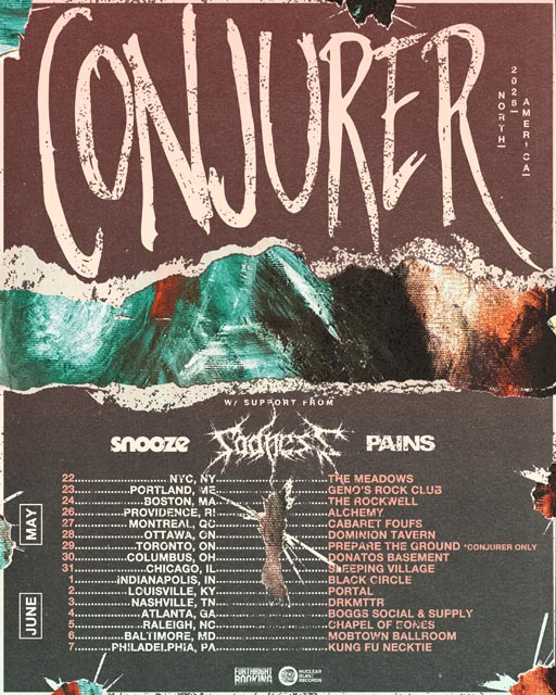 UK metal outfit Conjurer have announced a North American tour set to kick off on May 22 in New York City and conclude on June 7 in Philadelphia. Support will come from Sadness, Snooze, and Pains. Tickets are available at this location.