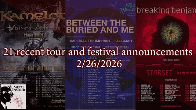 There’s no sign of slowing down for live shows. Metal Insider has rounded up 21 of some of the latest tour announcements, updates, and major festival news, so you can catch up on what you may have missed or revisit the highlights. The 2026 tour season is looking busy.