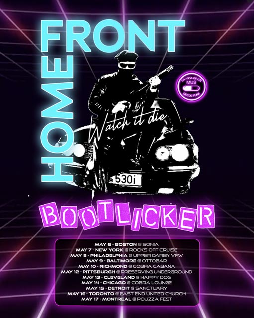 Home Front have announced a North American tour in support of their latest album, Watch It Die. Support will come from Angel Du$t and Beton Arme, Bootlicker, and Odd Man Out. Tickets are available at this location.