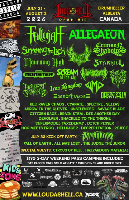 Loud As Hell Open Air Festival has announced its 2026 lineup, set for July 31–August 2 in Drumheller, Alberta, within Canada’s iconic Badlands. The 14th annual extreme music gathering will feature Fallujah, Allegaeon, Summoning the Lich, Gravemass, Crimson Shadows, Starkill, Edge of Paradise, and more, combining camping with three days of metal. Weekend passes are available at this location.