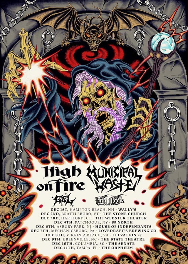 Municipal Waste and High On Fire will be closing out the year together for a co-headlining run. The trek is scheduled to kick off on December 1st in Hampton Beach, NH and will run through December 11th in Tampa, FL. Tickets go on sale this Friday (28th) at 10:00am local time via this location.