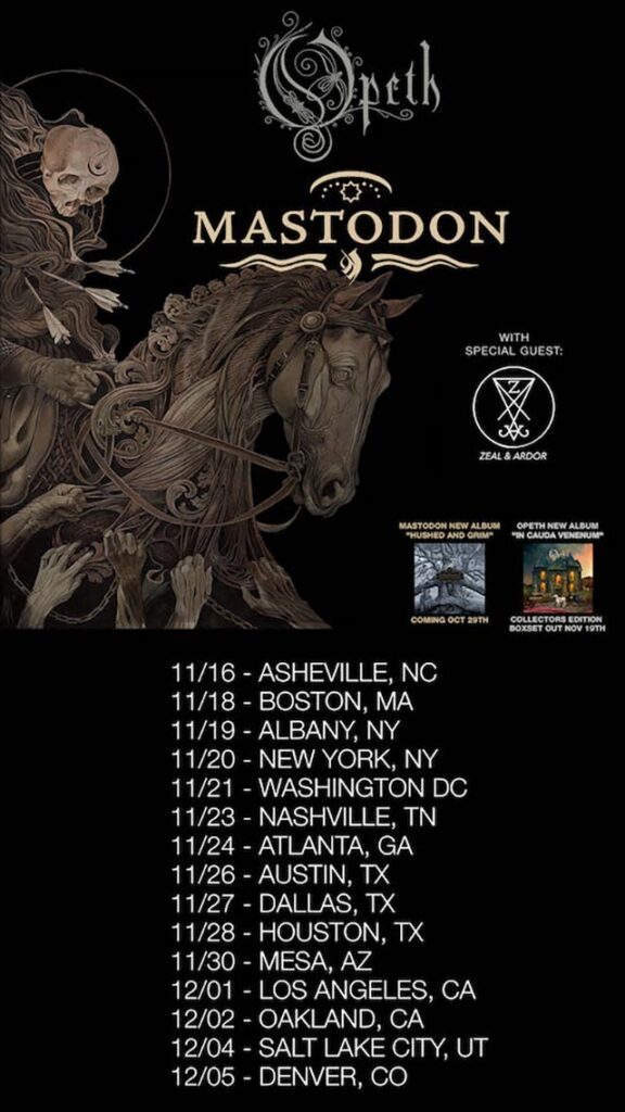 Opeth will finally make their return to North America, and this time around, Mastodon will be joining them on the trek with special guests Zeal & Ardor. The trek is scheduled to kick off on November 16th in Asheville, NC and will run through December 5th in Denver, CO. Tickets go on sale this Friday (17th) at 10am local time.