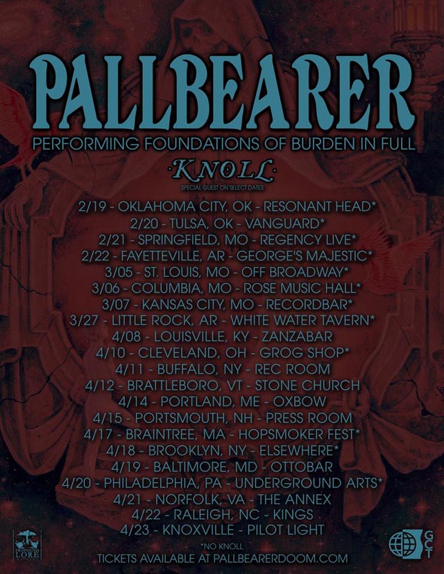 Pallbearer will return to North America in early 2026 with a headline tour celebrating their remixed and re-released album Foundations of Burden. Running through February, March, and April, the trek will feature the band performing the album in full across select Northeast and Midwest markets. Support will come from Knoll on select dates. Tickets go on sale today (23rd) at 10:00 AM local time via this location.