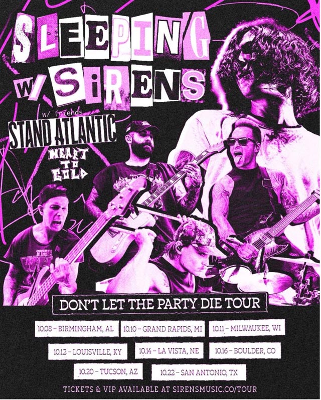 Sleeping With Sirens have announced their fall 2025 headlining tour. The trek, dubbed Don’t Let The Party Die, kicks off on October 8 in Birmingham, AL. Support will come from Stand Atlantic and Heart To Gold on all U.S. headline dates. Tickets go on sale this Friday (27th) at 10:00 a.m. local time.