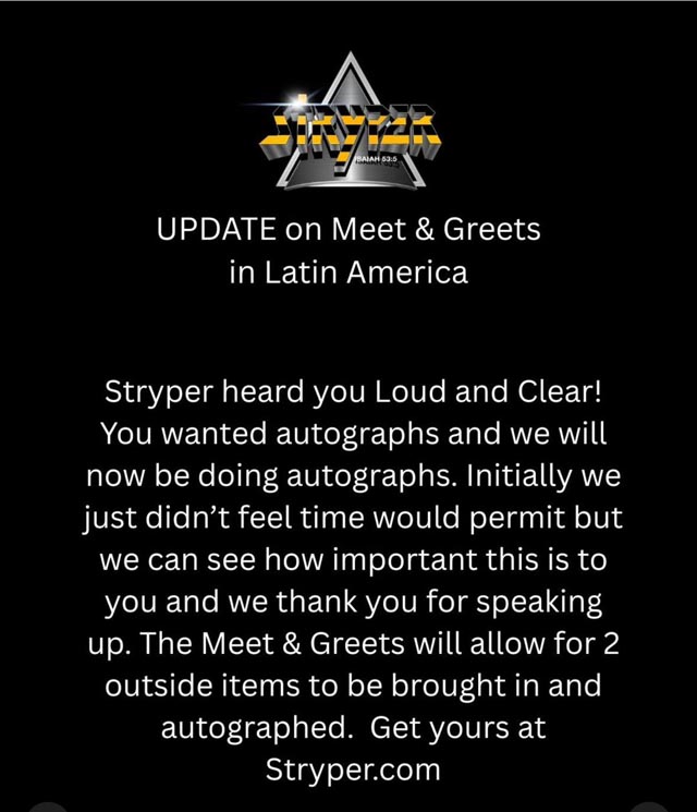 “Following recent medical advice, Oz Fox has been advised to avoid extended or intense touring. With his full support, STRYPER will tour Latin America this summer with guitarist Howie Simon, who has filled in previously. Oz may still be able to join us for occasional one-off or weekend shows, but longer trips are not recommended. We appreciate your prayers for Oz and his medical team, and we look forward to seeing you in July.”