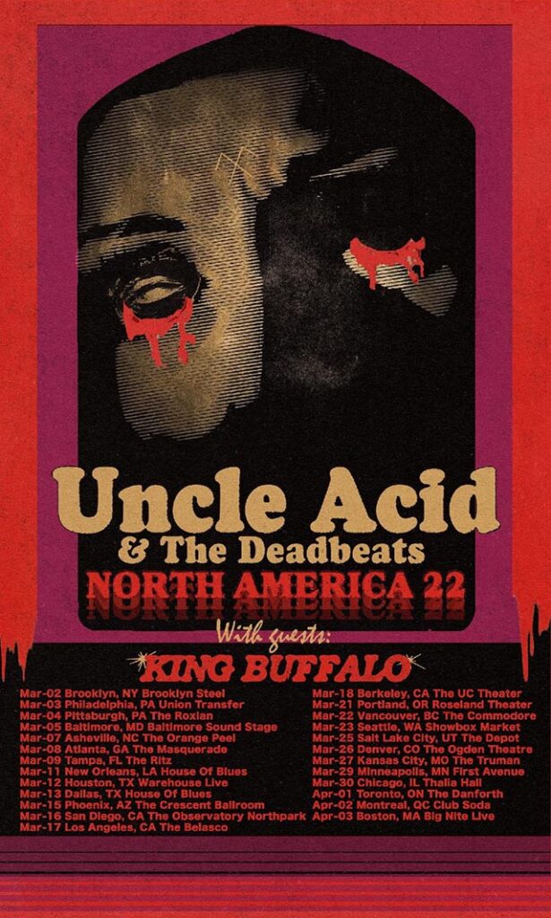 Uncle Acid & The Deadbeats will finally return to the road as they announced North American 2022 tour dates with special guests King Buffalo. The trek is scheduled to kick off on March 2nd in Brooklyn, NY and will run through April 3rd in Boston, MA. Tickets go on sale this Friday (10th) at 10am local time.