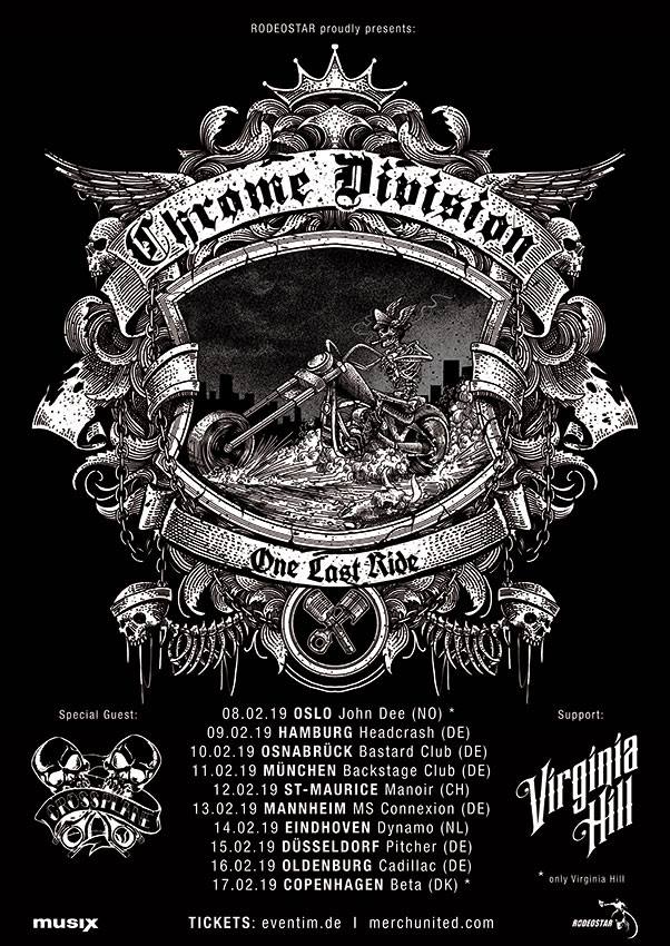 Early next year, Chrome Division will embark on a 10 show European trek with Crossplane and Virginia Hill.