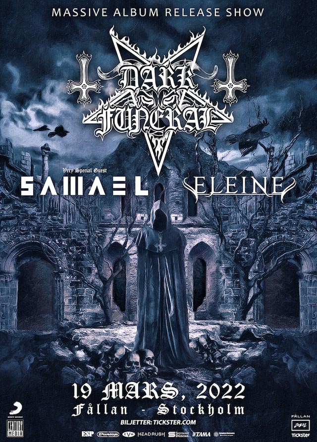 Dark Funeral will have an album release show on March 19th at Fållan in Stockholm, Sweden, with special guests Samael and Eleine.