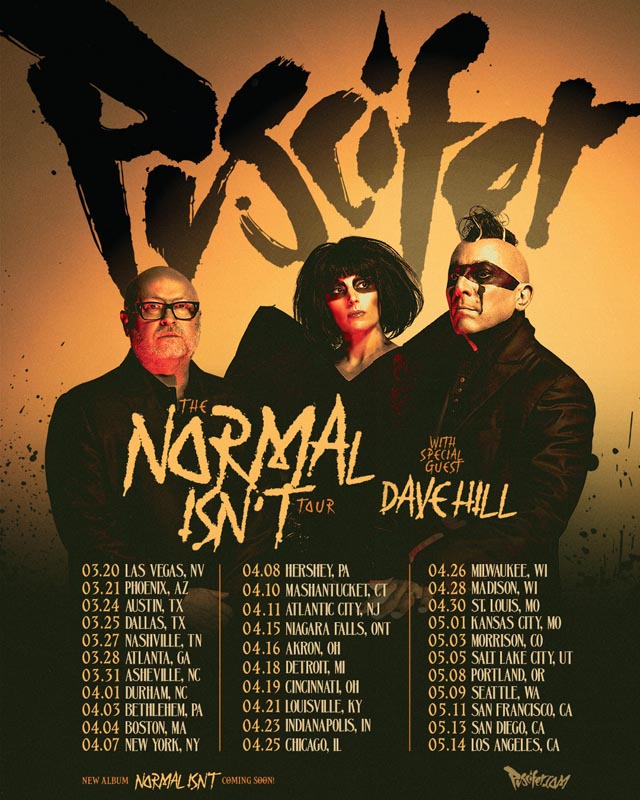 Written and recorded across Arizona, Los Angeles, and while on their Sessanta tour, Normal Isn’t finds Puscifer exploring darker beats inspired by their post-punk roots. Guest contributors include Greg Edwards, Danny Carey, and Tony Levin, among others. The band will support the release with a North American tour set for spring 2026, kicking off on March 20 in Las Vegas and concluding at The Greek Theatre in Los Angeles. Tickets go on sale Friday (24) at 10:00 AM.